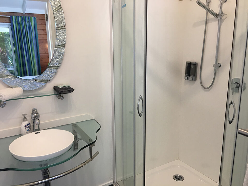 Our rooms are all wooden cabins which are fully self contained, serviced daily, comfortably furnished, and are all ground floor. Some have two small steps to enter. They all have 26” LCD televisions with over 60 channels, including 50+ SKY Digital Satellite channels, and each apartment has a DVD player.